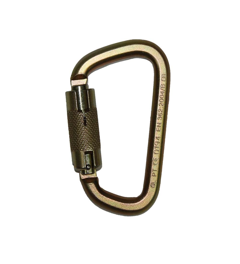 The SafeWaze FS1015 is our most popular standard carabiner for fall protection applications. It is self-locking with a twist lock and has a gate strength of 3,600 lbs.