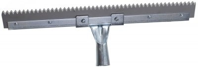 18” stiff gray EPDM rubber squeegee – 1/2” serrated edge, 1/4” x 2 blade. 16 ga plated steel. Stainless steel handle socket.