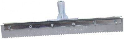 18” stiff gray EPDM rubber squeegee – 3/16” serrated edge, 1/4” x 2 blade. 16 ga plated steel. Stainless steel handle socket.