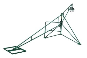 The Grizzly 300 lbs capacity swing hoist. Boom and operator fence can be mounted so boom will swing left or right to unload material or equipment on the roof. 599 000 gin wheel and 597 000 counterweights are required and are sold separately.