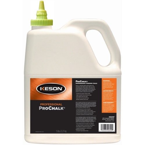 The ProChalk Standard Grade Marking Chalk is formulated to be durable and resistant to fading, ensuring that markings remain clear and visible even after extended periods of time. Its 5 lb. size makes it a cost-effective option for projects that require a large quantity of marking_chalk. Overall, the 5 lb. Glo-Lime ProChalk Standard Grade Marking Chalk is a reliable and practical tool for professionals who value precision and efficiency in their work.