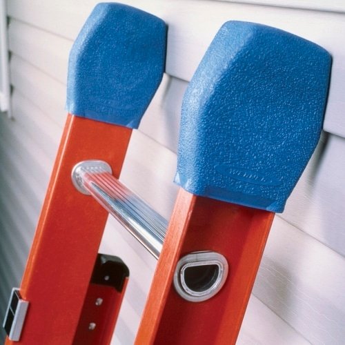 Helps protect siding from dents and scratches. Designed to ‘snap’ over extension ladder rail end caps. Resists paints, stains, thinners and solvents.
