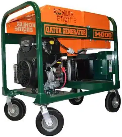 The 14,000 Watt GATOR Generator is a unique product developed with our distributor for running Heat Welding Equipment. This unit has clean strong power, perfect sine waves, and is the secret for running Robotic Welders. Leister welders require more than 10,000 watts of power to protect computer circuit boards from low power failure. Our compact frame makes for easy handling of this generator, all while still producing 12,000 watts of continuous power. This unit is powered by a reliable 22hp Kohler Engine and paired with a top of the line GATOR alternator head. This generator is perfect for running your hot air welder and other hand tools at the same time with more plug-in options.