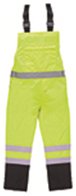 Carton Qty 1. 300D PU coated polyester with sealed seams. Adjustable suspenders, waist and ankle. Upper chest pckt w/zipper, 4 pen pckts and one open pckt. Snap fly closure. 2 back pckts. Two tone w/ black leg bottom. ANSI 107 Class E. MD-5X